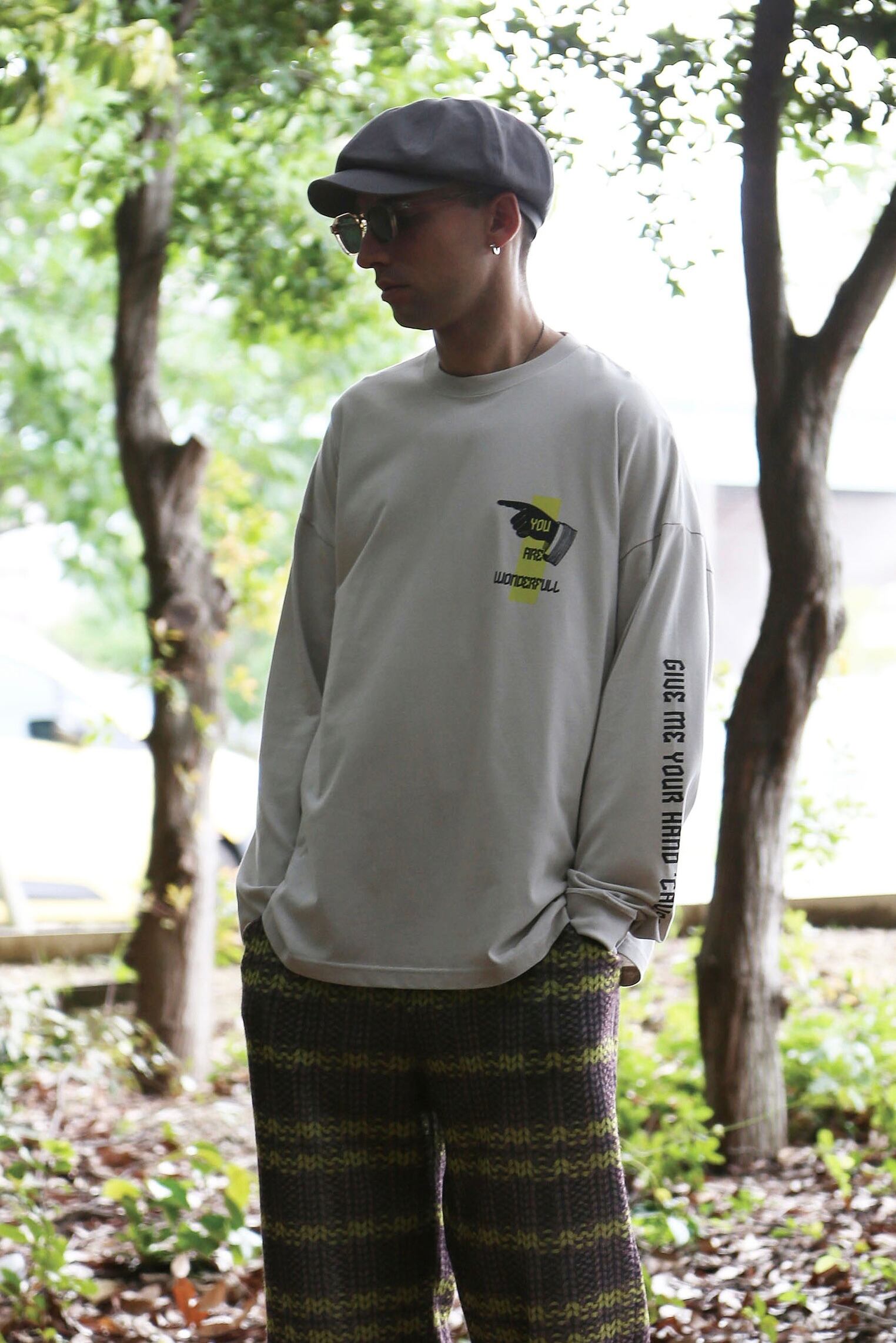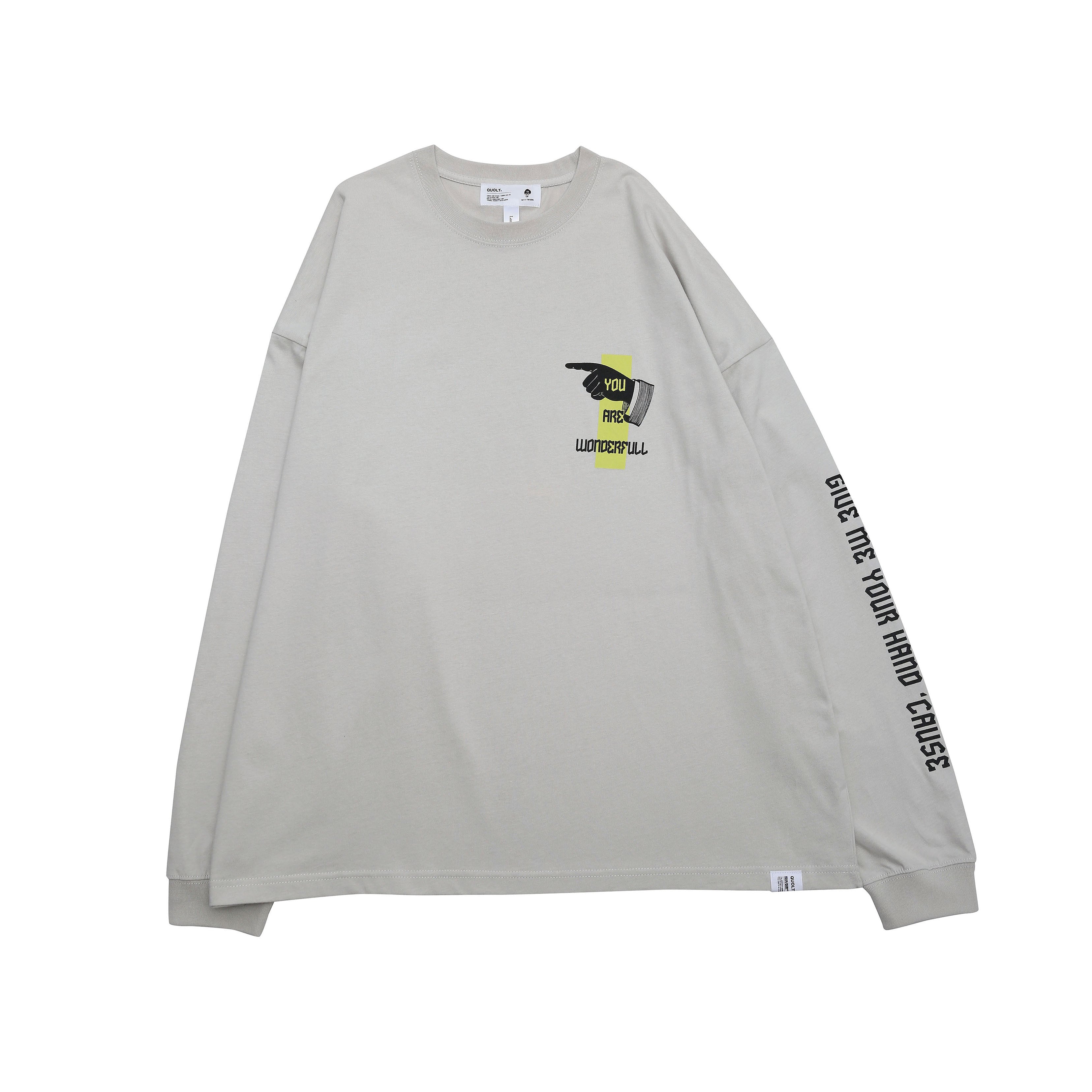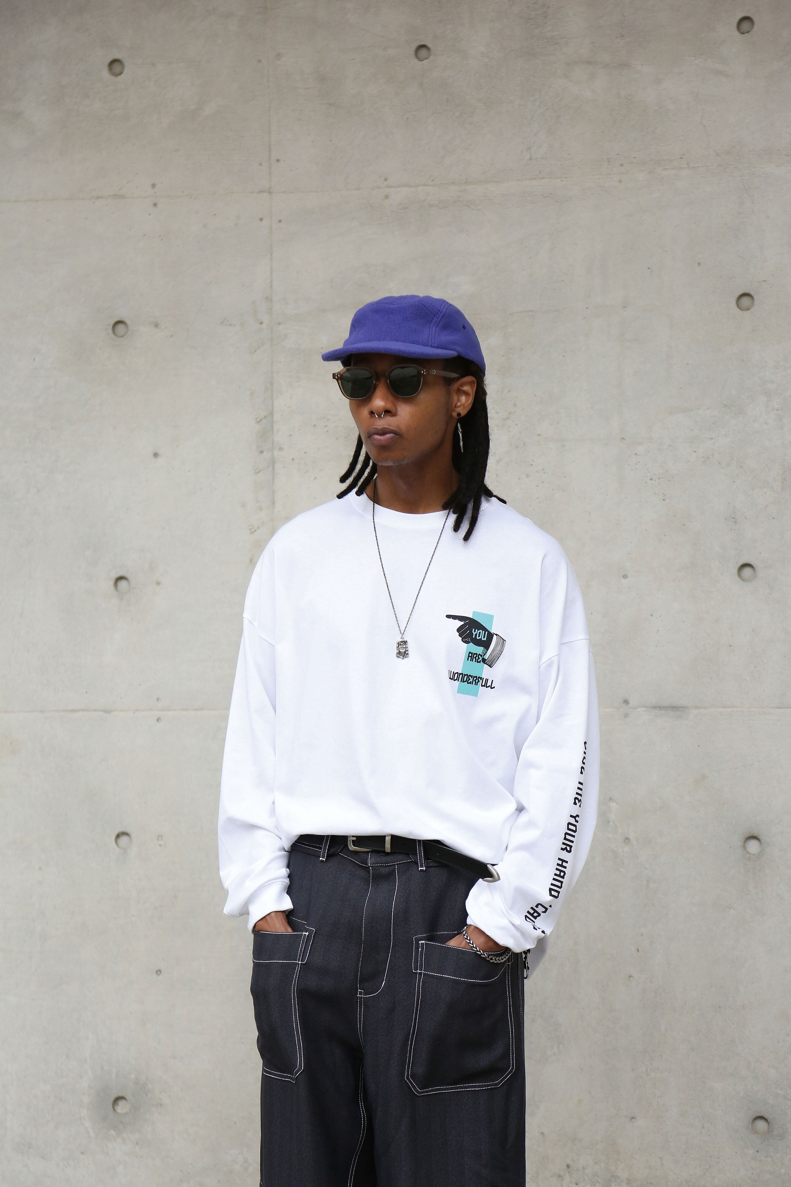 した着用感の袖リブ付きコットンビッグTシャツ。