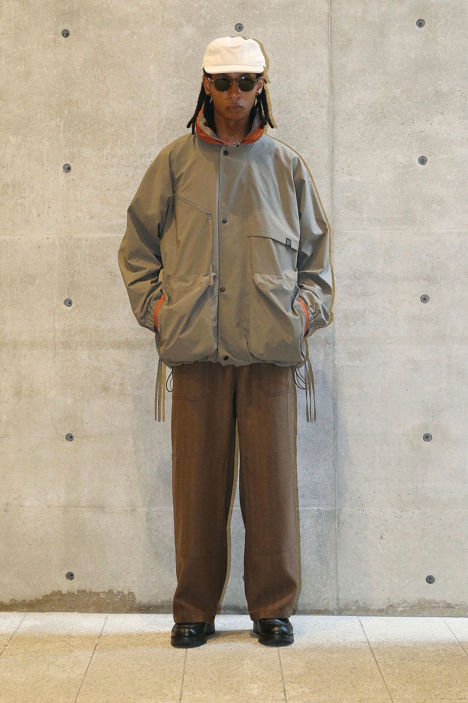 無骨なステッチワークと品のある生地感との対比が新鮮な印象で、様々なスタイルに対応します。