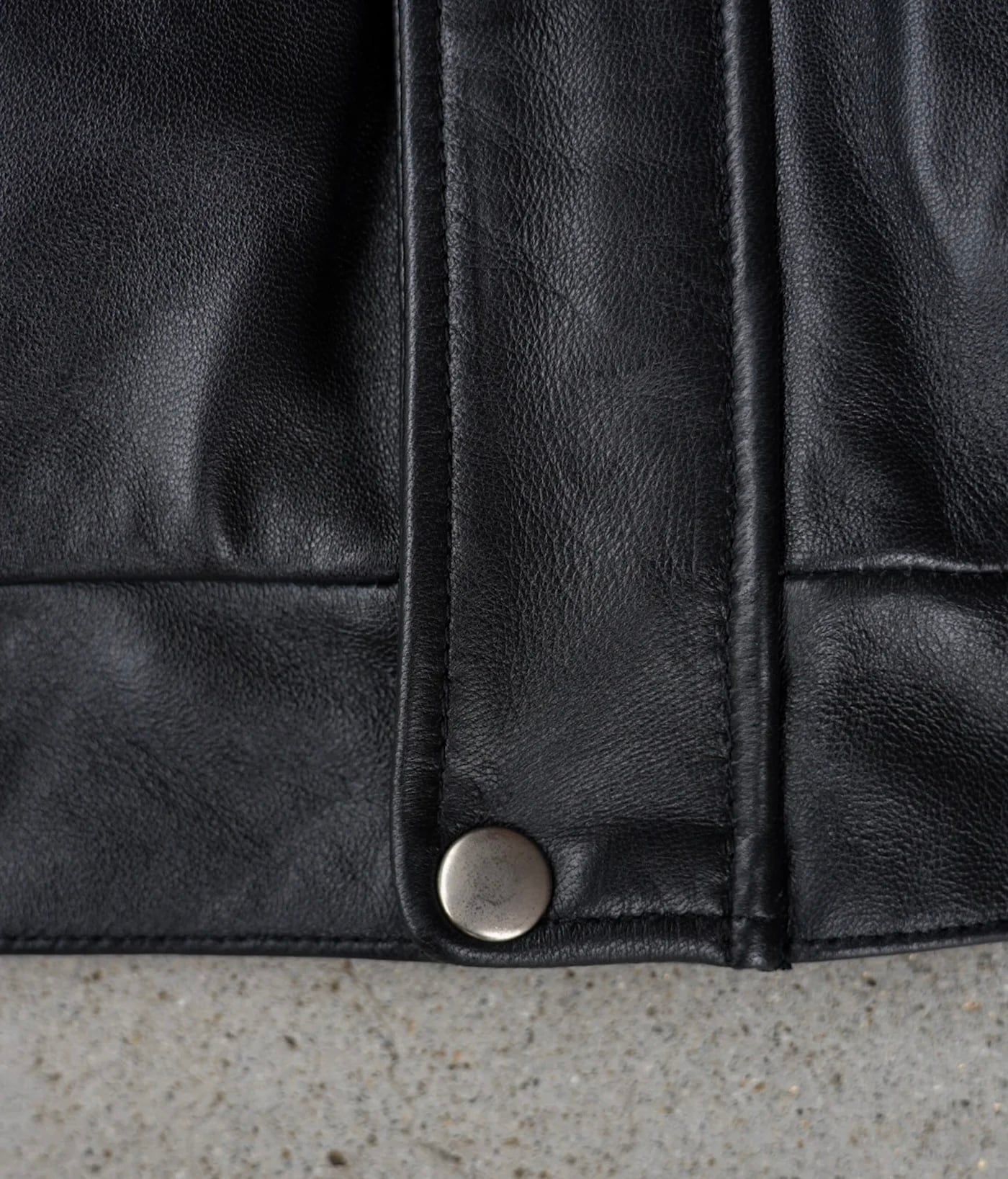 襟、裾とアクセントとして艶消しのドットスナップ。