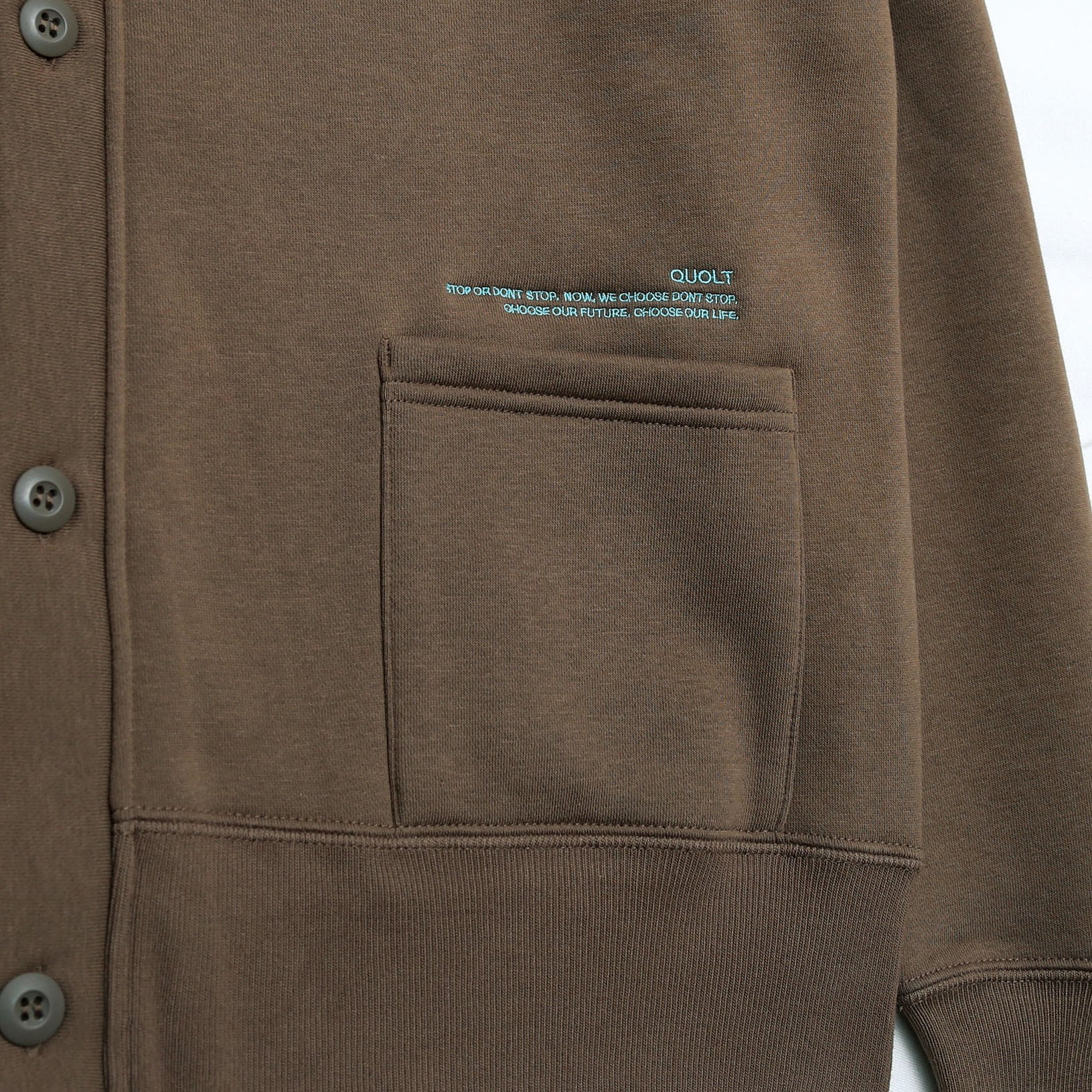 柔らかな着心地の裏起毛生地を使用した使い勝手のよいスウェットカーディガン。