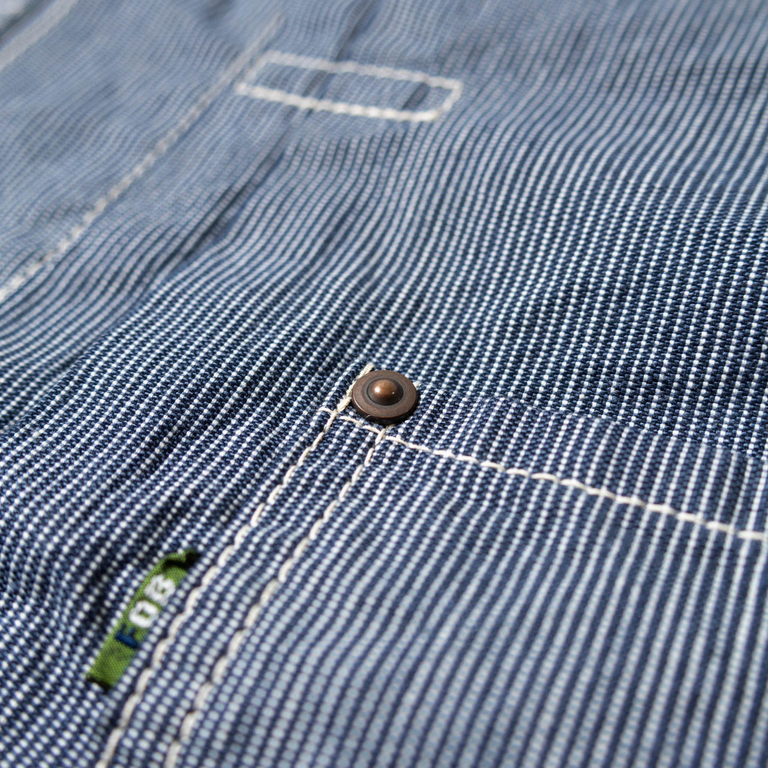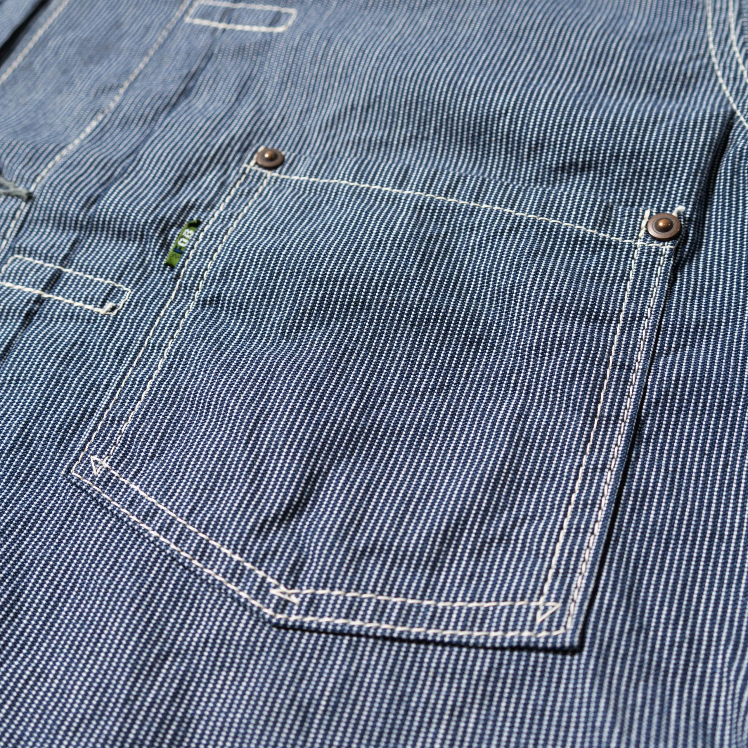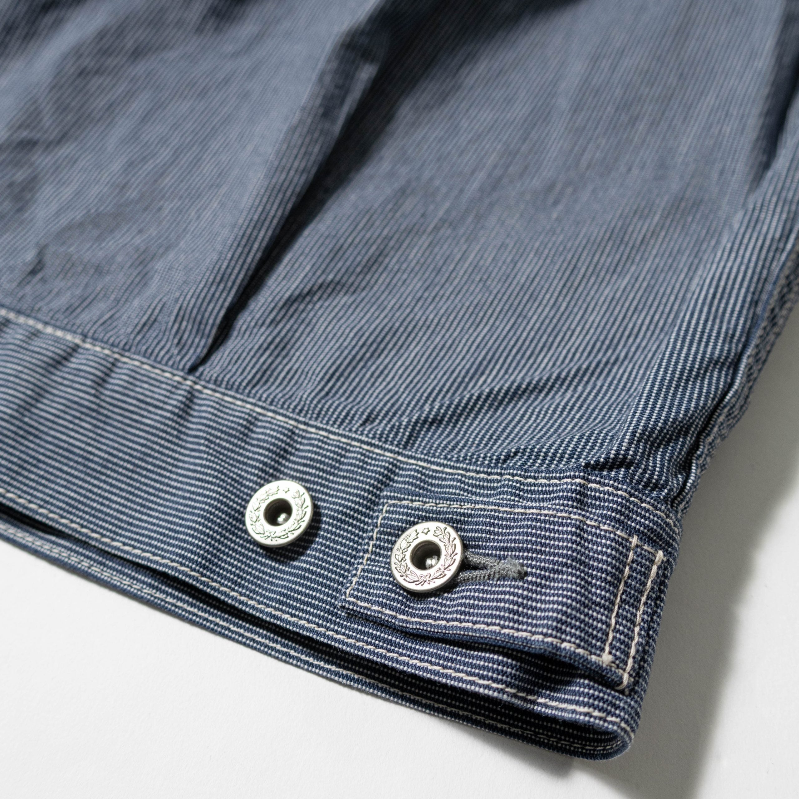 1st typeのワークジャケットデザインをベースに綿100%のインディゴヒッコリーを採用。