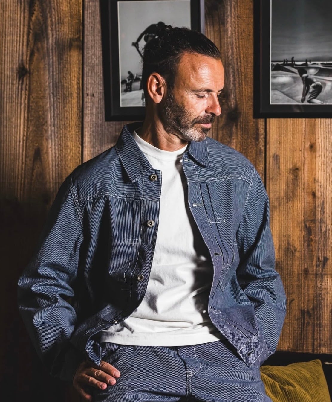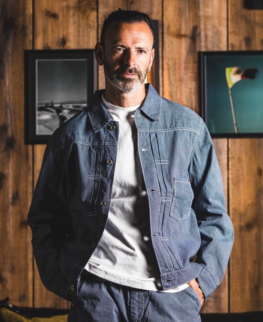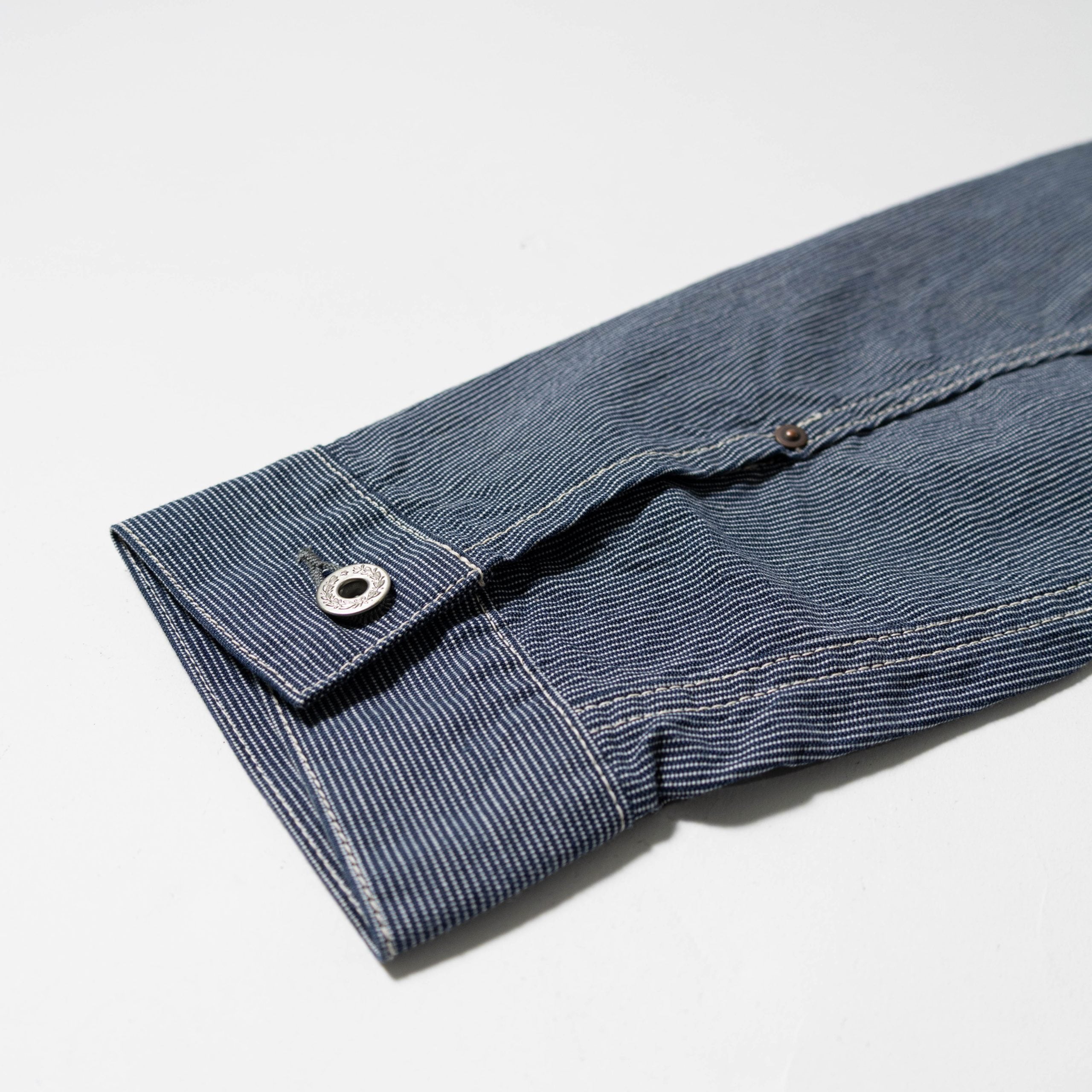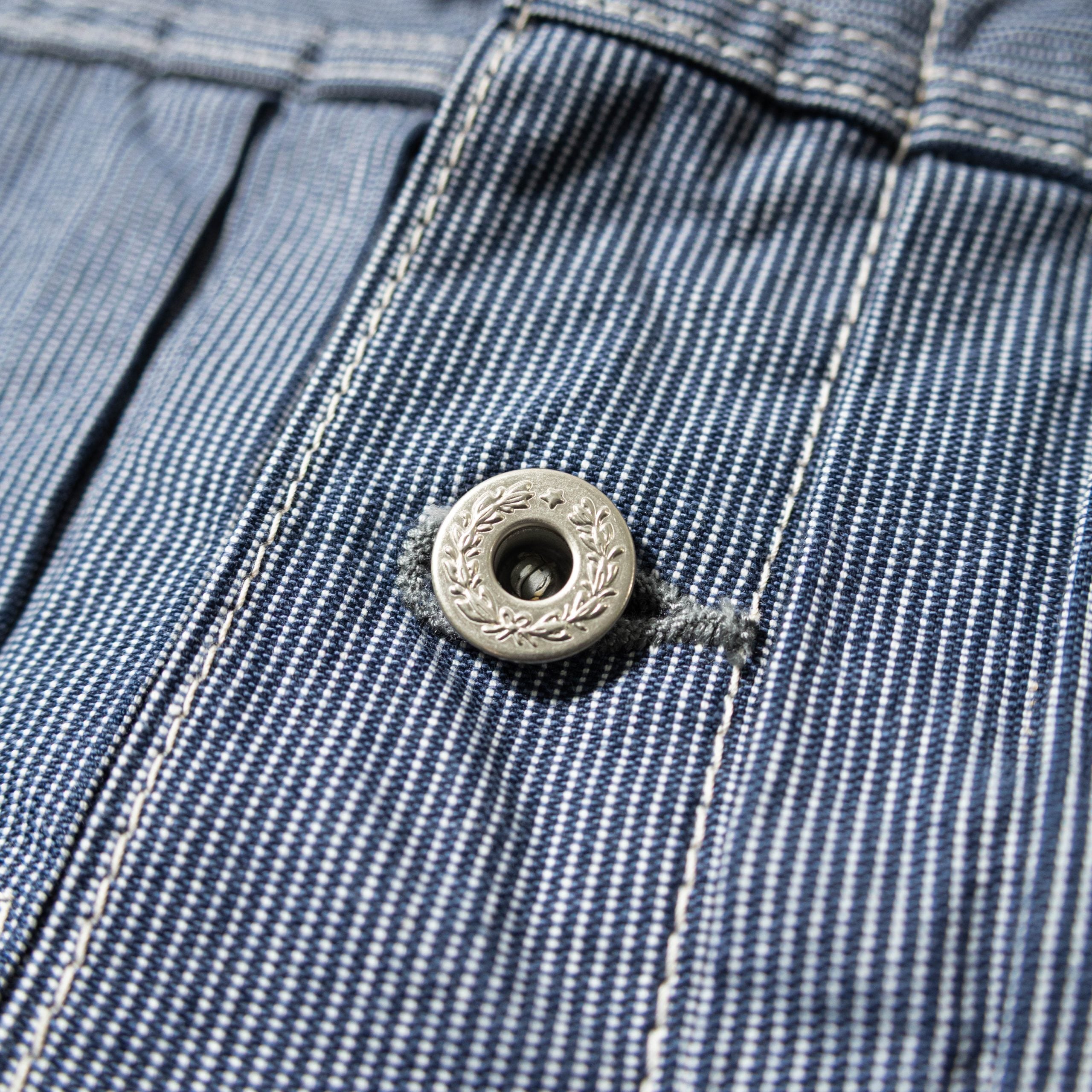 1st typeのワークジャケットデザインをベースに綿100%のインディゴヒッコリーを採用。