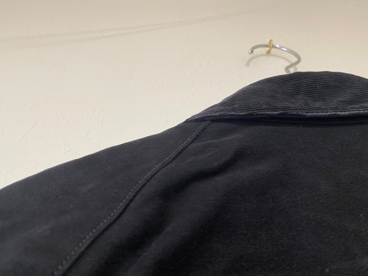 衿をコーデュロイに切り替え、裏地には復刻生地VATDYE オックスを採用。